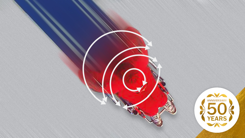 Fotot är taget ovanifrån på en användare som tävlar i rullstol och skapar hastighetslinjer på marken. Därefter har bågar och former ritats för att illustrera personens siluett. På andra bilden ser du hur idén kom till.