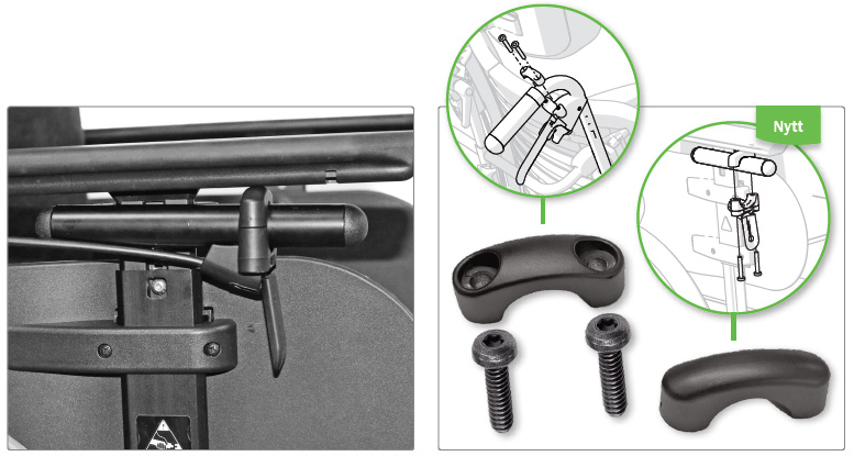 Självtilten monteras under armstöden och gör det möjligt för användaren att självständigt justera rullstolens tilt, vilket främjar självständighet och komfort.