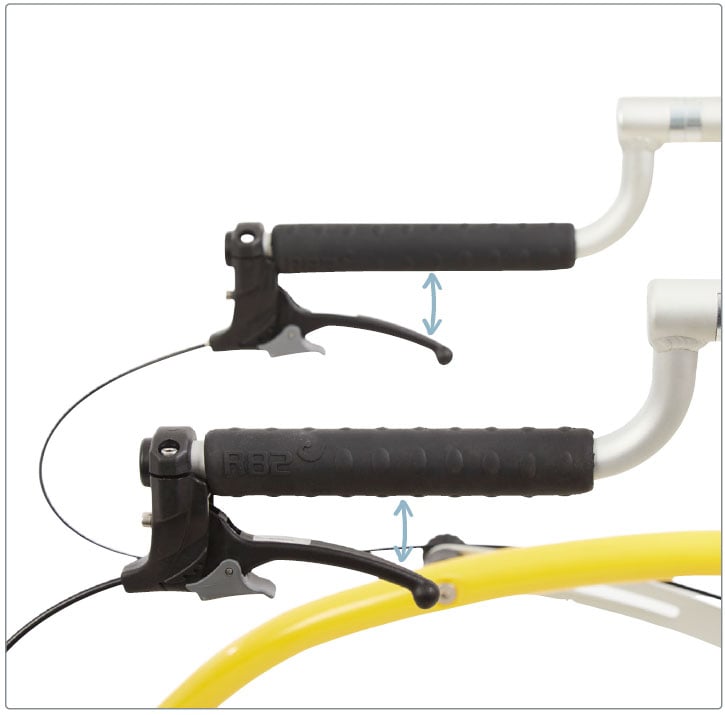 Genom att minska avståndet mellan broms- och körhandtag blir bromshandtaget lättare att nå för användaren, vilket ger en enklare och mer stabil manövrering av bromsfunktionen.